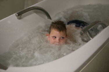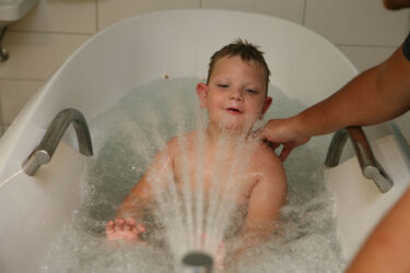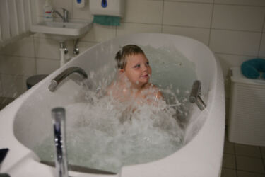 Do lázní jezdíme od Adámkových prvních narozenin, ale cvičení je tam velmi málo. Podle mě to pro dítě s tak závažnou ohybovou vadou, jen ztráta vzácného času. Začali jsme tedy vyhledávat účinnější rehabilitaci, která je ovšem obrovsky nákladná. Nyní jezdíme do Centra Hájek specializovaného na metodu oblečku Thera-Suit.