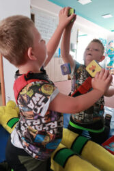Adámek se pomaličku, ale jistě zlepšuje. Díky speciální školce Kaňka a intenzivní rehabilitaci je každým měsícem kousíček blíž k tomu aby jednou mohl alespoň trochu samostatně fungovat.