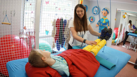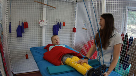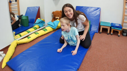 Kubíček se díky rehabilitaci v Centru Hájek zlepšil ve stabilitě při sedu a snížila se mu o 50% skolióza zad. Dále se zpevnil ve vysokém kleku a v držení těla ve vyšších pozicích, což bychom jinde s Kubíčkem nedokázali…