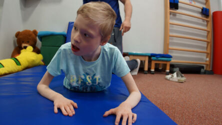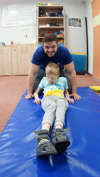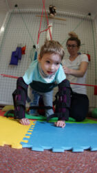 Matýsek se díky rehabilitaci v Centru Hájek zlepšil ve zpevnění břišního svalstva a hlavně si posílil dolní i horní končetiny a tím se mu podařilo i zpevnit ve vysokém kleku. Matýsek i při této rehabilitaci, dokáže pobavit celou Svoji skupinu fyzioterapeutů 🙂
