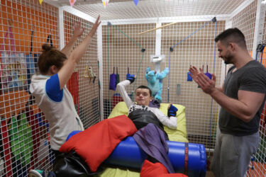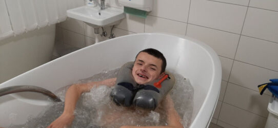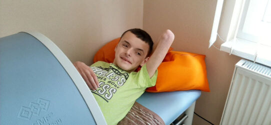 Jiřík začal v dospělosti růst pouze na levé straně, čímž vznikla velmi velká skolioza páteře, rotace pánve atd., což mu velkým způsobem komplikuje život. Nemohl ani pořádně sedět, což zvládal zcela samostatně. Sed byl stabilní a samostatný. Po vzniklé skolioze však sed nebyl možný. Tuto situaci jsem řešila opakovaným pobytem v Centru Hájek u Plzně, kde je velmi intenzivní neurorehabilitační cvičení s doprovodnými procedurami-oxygenoterapie, magnetoterapie, vodoléčba, masáže… Jiřík se tam viditelně zlepšil. Vše bylo na dobré cestě, ale bohužel jsem loni září měl abdukce v levé kyčli, což znamená, že nebylo možné dát nožky do tzv. žabky a bylo ho velmi obtížné i přebalit. Na zlepšení stavu nám byla doporučena aplikace botoxu. Nedopatřením však byl aplikován i sval zvaný PSOAS, který drží záda. V tomto případě však záda nemělo co držet, Jiřík se neudržel ani v sedě. Skolioza se tím pádem rapidně zhoršila. Jelikož se mi nepodařilo sehnat finanční obnos na opakování rehabilitace, která byla velmi potřebná, zaplatila jsem Jiříkovi v dubnu pobyt z jeho stavebního spoření, které jsem mu 6 let spořila a v tuto dobu zrovna skončilo. Naspořená částka 54 000,-akorát pokryla tento pobyt.