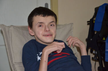 Jiřík je 20-ti letý mladý muž-vrozená vývojová vada centrálního nervového systému, kvadruparéza, psychomotorická retardace, aberace 8 chromozomu, DMO.