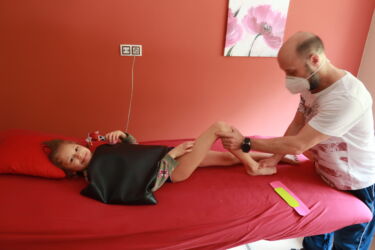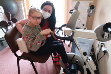 Magdalénka se narodila normálně, přirozenou cestou, nic nenasvědčovalo, tomu, že vše za nedlouho bude jinak. Ve 3 měsících nás nesledovala pohledem, neotáčela se, měla dyskinetické pohyby, ruce a nůžky neustále v pohybu, byla trochu spastická. Vyšetření na neurologii znělo dětská mozková obrna, mikrocefalie, malá hlavička, pravděpodobně nějaké genetické onemocnění, které zatím nebylo prokázáno. Nicméně Majda je veselá, usměvavá, hravá holčičku se zájmem o dění o sebe, má moc ráda děti. Péče o ni je náročná, ale nakonec začala později sedět, lézt a dokonce i chodit za ruce a to s pomocí lázní, hipoterapie a terapie therasuit a jiných terapií. Nemluví, rozumí jen základním pojmům, je na plenkách a zcela dokázána na naši celodenní péči. Potřebuje pomocí efektivního cvičení posilovat trup a celé tělo a posunout se zas o kousek dál, aby mohla sama chodit. V Centru Hájek jsme již byly dvakrát a cvičení jí pomáhá. Proto velice děkujeme za každou případnou pomoc, protože terapie je finančně náročná a dvakrát v roce bychom ji chtěly s Magdalénkou absolvovat.