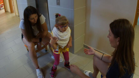 Musím také napsat, že Adélka je úžasná holčička, která se moc snaží a je velmi trpělivá. Při tom všem, co musí zvládnout, ať je to neustálé každodenní cvičení, nebo různá vyšetření v nemocnici má velmi často úsměv na tváři, je to naše sluníčko a moc si přejeme, aby Adélka byla spokojená. Tak moc chce chodit, zatím to sama nezvládne, ale my pevně věříme, že společně k vytouženému cíli dojdeme.