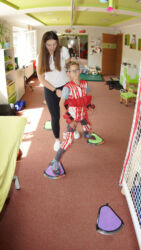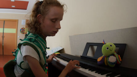 Julinka je na svoje možnosti šikovná slečna. Je žákyní ZŠ Speciální v Jindřichově Hradci. Od první třídy Julince pomáhá osobní asistentka. Bez této služby si již docházku ani nedovedu představit. Paní asistentka dceři pomáhá jako doprovod, dohled při všech aktivitách ve škole i mimo ni, pomáhá při oblékání, stravování apod. Julinka se učí bodové písmo, základní počty, praktické dovednosti. Již šestým rokem hraje na klavír v ZUŠ v Jindřichově Hradci. Hudba je její svět. Zpočátku Julinka měla problémy zmáčknout klávesu – její prsty byly málo pohyblivé a těžce ovladatelné. Ještě dnes má problémy, ale už jsou oproti původním mnohem menší. Sama dokáže jezdit na kole -odrážedle, které má upravené. Juli je veselá slečna, která miluje hudbu, hmatové knížky, ráda kreslí, má ráda pohyb. Proto jsou pro ni rehabilitace důležité. Prognozy byly, že nebude chodit. První krůčky udělala až v pěti a půl letech. Od té doby mnohokrát spadla a nabila si nos. Nikdy nic nevzdává. Tím nás učí jak jít dál a bojovat s dětskou obrnou, která čas od času ukáže svou sílu. Speciální cvičení je jediný způsob nápravy. Vidíme výsledky po každém pobytu.