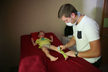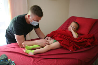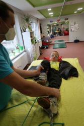 V roce dítěte bylo zjištěno že má osteogenesis imperfecta (extrémní lámavost kostí)+DMO a klasické cvičení je prý příliš rizikový. Po X návštěv lékařů běháního od čerta k ďáblu jsme se dostali k docentovi Vyskočilovi, který nás dostal do výzkumu na podporu struktury kosti kloubů. Zatím žádné výsledky. Poté nás zaslal na protetiku kde jsou synovi 3x do roka vyrobeny ortézy (forestky), které mu pouze pomáhají vyrotovat vytočit kotníky ven. Bohužel po stálém docházení na rehabilitace cvičení lehce Vojtovo metodou se výsledky žádný nekonají.