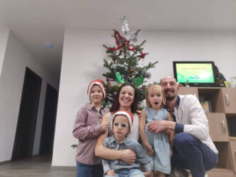 Jak bych začala – máme syna Sebastian Svoboda 6let zdráv, až na malé respirační potíže a dvojčata Julie Svobodová A a Samuel Svoboda B Všichni jsou po ivf (umělém oplodnění). 2těhotenství byť bylo komplikované děti měli být zdraví na svět šli ale o 3 měsíce dřív. Julie má srdeční vadu ale k životu nijak nebezpečná není vyvíji se pomaleji ale dobře, ale Sam měl krvácení do mozku podstoupil operaci kde mu byl zaveden dren na odvod mozkomíšního mazu. Ten mu byl po roce částečně odoperován (hadička už přirostla tak ji ponechali) ve vývinu by neměl nijak vadit. Od narození měl skroucené nohy, špičky kolena dovnitř, od lékařů nic závratného, prý vyčkat až si začne stoupat cca v roce a půl co už děti tapou jsme byli zasláni na rehabilitace, kde ale nevěděli co s námi protože 14dni po porodu s ničeho nic v nemocnici v inkubátoru proběhla zlomenina pravé stehenní kosti, která se opakovala.