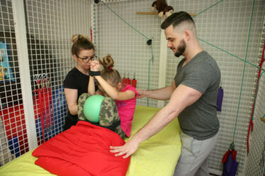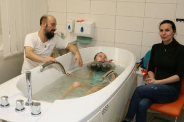 Rovněž fyzioterapeuti již ví od první chvíle, co Zuzanka nejvíce potřebuje a jak s ní pracovat a neztrácí tedy drahocenný čas „seznamováním“ a vytvářením vzájemné důvěry, která je podle mého názoru a zkušeností při rehabilitaci malých dětí naprosto zásadní a nezbytná. Letos zde Zuzanka absolvovala již 7mý TheraSuit. Opět výborně spolupracovala, zlepšila se především v posílení celého těla a koordinaci pohybů. Postižení DMO je bohužel dlouhodobá záležitost. Díky kvalitní rehabilitaci lze dítěti ovšem výrazně pomoci a je to v podstatě jediná naděje na samostatnou chůzi a tedy plnohodnotný a nezávislý budoucí život. Přestože i svépomocí denně cvičíme (včetně plavání, hipoterapie…apod.) profesionální péči a vybavení opravdu nahradit nelze.